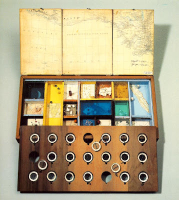 Joseph Cornell's "Object (Roses des Vents)". This took him nearly ten years to make and contained images and objects that represented all the voyages that he never took but clearly fantasised about.